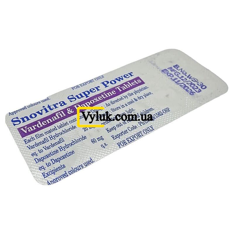 При розробці Snovitra Super Power змогли досягти такого гарного результату завдяки використанню відразу двох сильнодіючих компонентів – Варденафіла та Дапоксетіна.