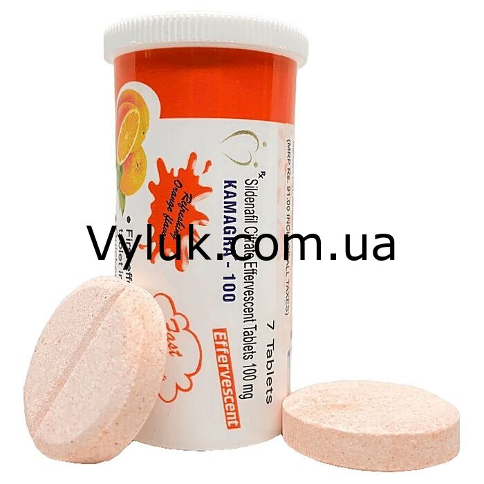 Kamagra Effervescent — це дженерик Віагри, що випускається у вигляді шипучих таблеток із приємним апельсиновим смаком. Достатньо розчинити одну таблетку у склянці води — і вже за 20–30 хвилин активна речовина починає діяти.